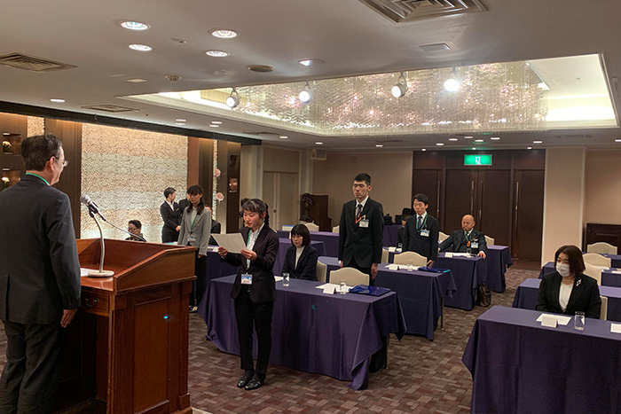 ・特別支援学校卒業の新入社員の入社式(いなげや3名・ウェルパーク1名) 新入社員代表の挨拶![]()